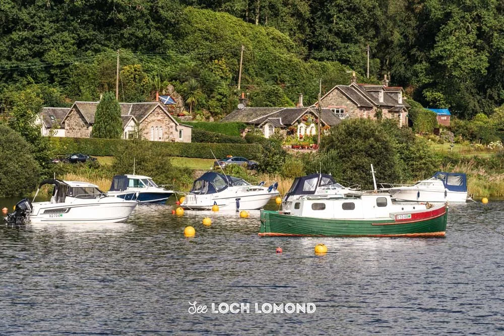 A little further along the A82, take the first turning for Luss and follow the lochside road to Aldochlay, a tiny hamlet known for its picturesque views to several of Loch Lomond’s islands. This spot is particularly popular among kayaking and canoeing enthusiasts, as it offers easy access to islands like Inchtavannach and Inchconnachan. Many visitors enjoy launching their boats from Aldochlay and spending the day exploring the surrounding waters. Keep following the road into Luss, passing on your right the show ground that hosts Luss Highland Games each summer.